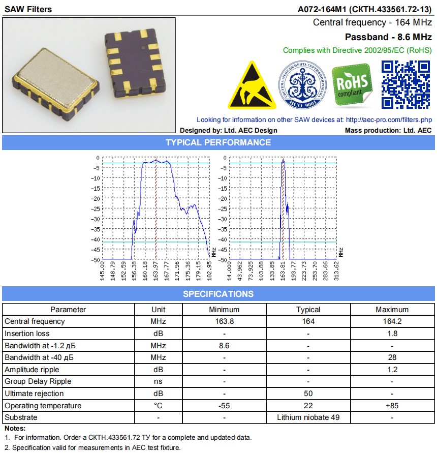 | Central frequency | MHz | 163.8 | 164 | 164.2 |