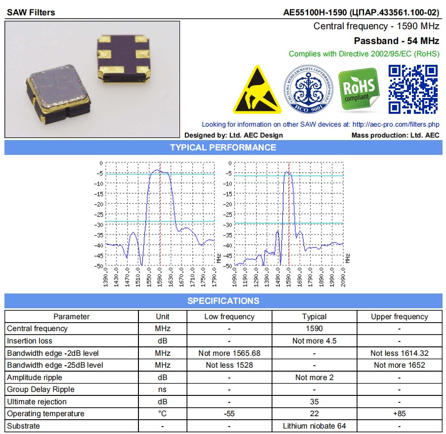 | Bandwidth edge -2dB level | MHz | Not more 1565.68 | - | Not less 1614.32 | ||||||||||||||||||||