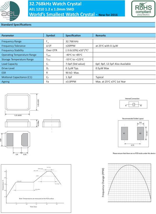AEL晶振,AEL1210晶振,無(wú)源兩腳晶振,32.768K時(shí)鐘晶體具有小型,薄型,輕型的貼片晶振表面音叉型晶體振蕩器,產(chǎn)品具有優(yōu)良的耐熱性,耐環(huán)境特性,可發(fā)揮晶振優(yōu)良的電氣特性,符合RoHS規(guī)定,滿足無(wú)鉛焊接的高溫回流溫度曲線要求,金屬外殼的封裝使得產(chǎn)品在封裝時(shí)能發(fā)揮比陶瓷振蕩器外殼更好的耐沖擊性.