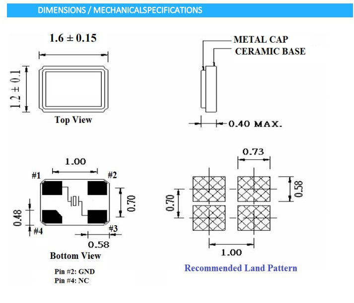 | Shunt Capacitance (C0) | <1 typ, 2.0 pF | |||||||||||||
