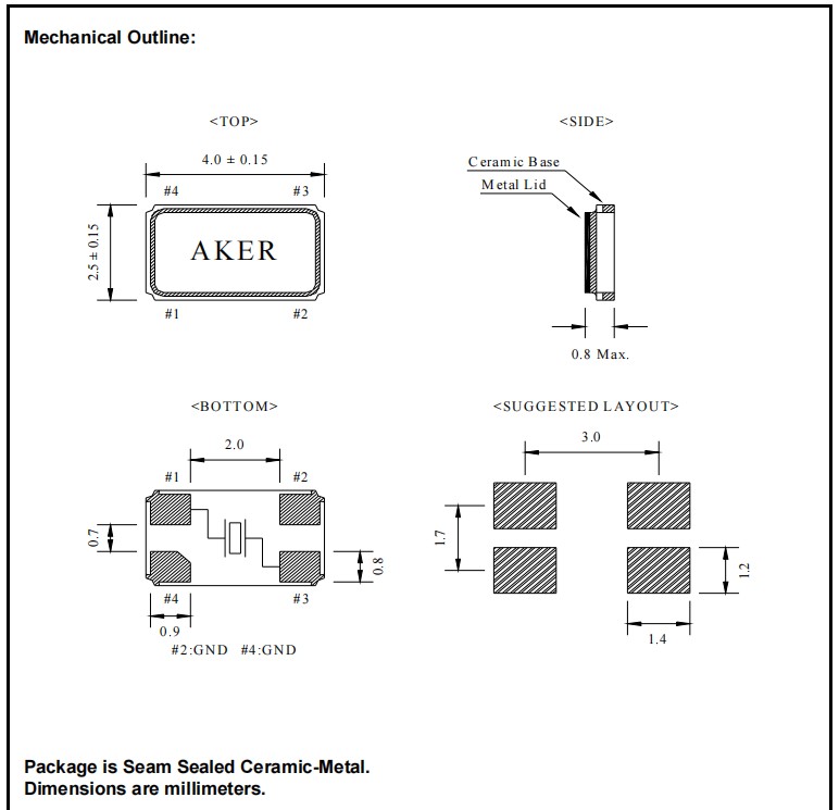 Aker安碁晶振,C4S-18.000-20-3050-R,通訊設備晶振,尺寸圖