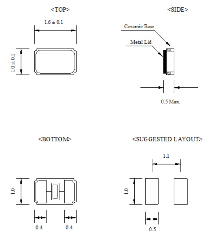 AKER超小型晶振,CTS1-32.768-12.5-20-X-R,智能手機晶振,1610mm諧振器,可穿戴設備晶振,尺寸圖