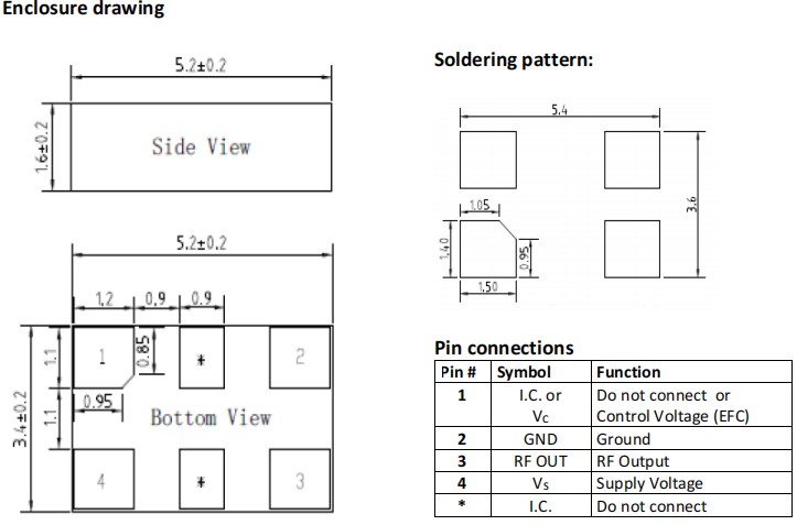| Enclosure (see drawing) (LxWxH) | 5.2x3.4x1.85 | mm | See drawing | |||||||||||||||||||||||
