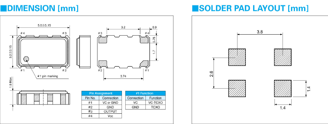CSX532T/CSX532T19.200M2-UT10/TCXO/19.2MHz/5032mm/±2.5ppm,尺寸圖