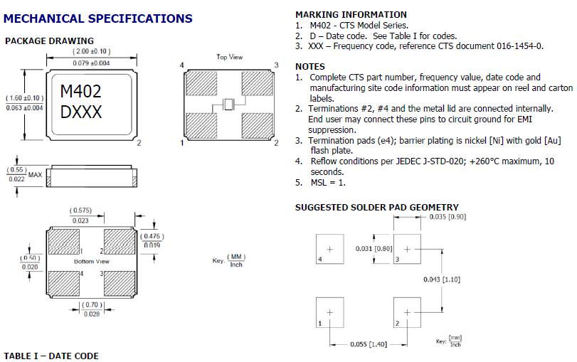 | 402F200XXCJR | CTS Crystal | 402 | MHz Crystal | 20MHz | 4-SMD, No Lead |