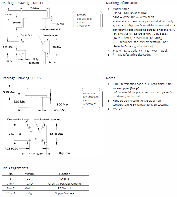 | MXO45-3C-8M0000 | CTS晶振 | MXO45 | 8MHz | ±50ppm | 14-DIP, 4 Leads (Full Size, Metal Can) |