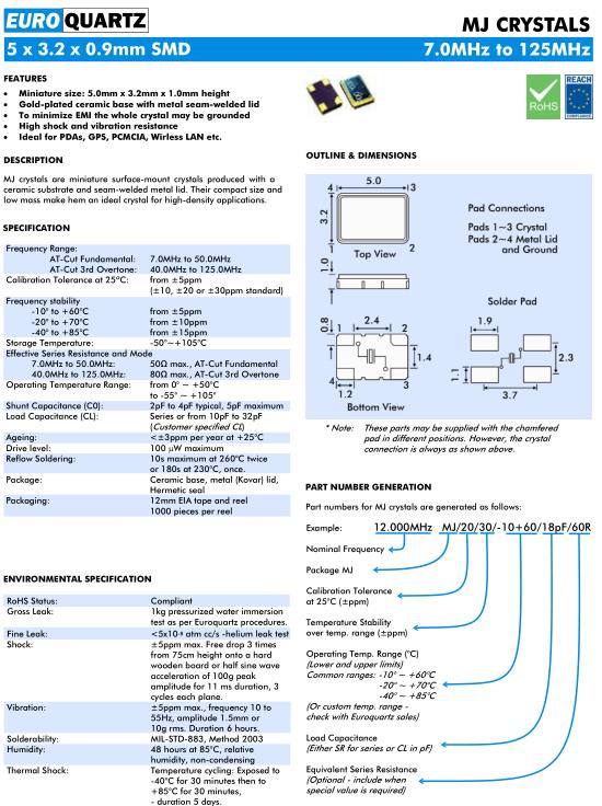 | AT-Cut Fundamental: | 7.0MHz to 50.0MHz | |