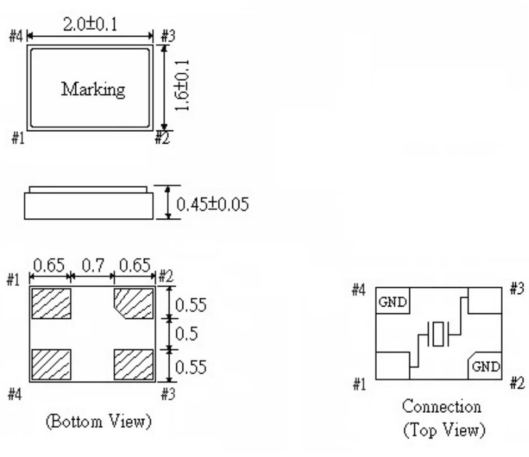 F2016A-30-50‐D‐30‐F‐26.000MHz,2016mm,FCD-Tech超小型晶振,F2016A,智能穿戴設備晶振,尺寸圖