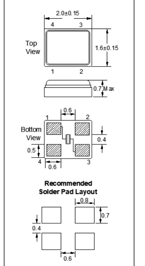 外形尺寸:2.0x1.6mm石英晶振