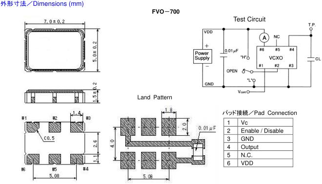 Fujicom晶振,FVO-700晶振,VCXO壓控晶振,小型SMD有源晶振,從最初超大體積到現在的7050mm,6035mm,5032mm,3225mm,2520mm體積,有著翻天覆地的改變,體積的變小也使產品帶來了更高的穩定性能,接縫密封石英晶體振蕩器,精度高,覆蓋頻率范圍寬的特點,SMD高速自動安裝和高溫回流焊設計,Optionable待機輸出三態輸出功能,電源電壓范圍:1.8V~5V,高穩定性,低抖動,低功耗,主要應用領域:無線通訊,高端智能手機,平板筆記本WLAN,藍牙,數碼相機,DSL和其他IT產品的晶振應用,三態功能,PC和LCDM等高端數碼領域,符合RoHS/無鉛.