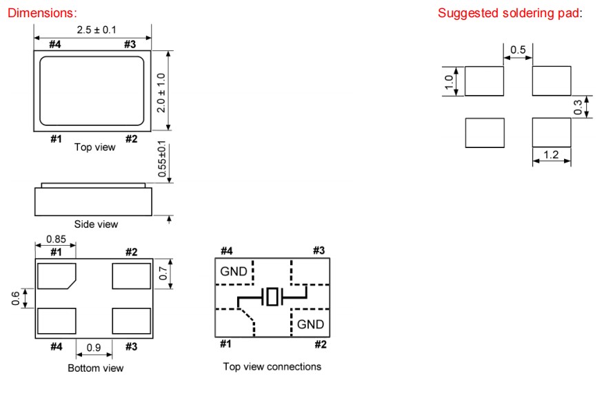 12.86574,27MHz,2520mm,KX-6F,Geyer耐高溫晶振,輕薄型晶振,航空航天晶振,尺寸圖
