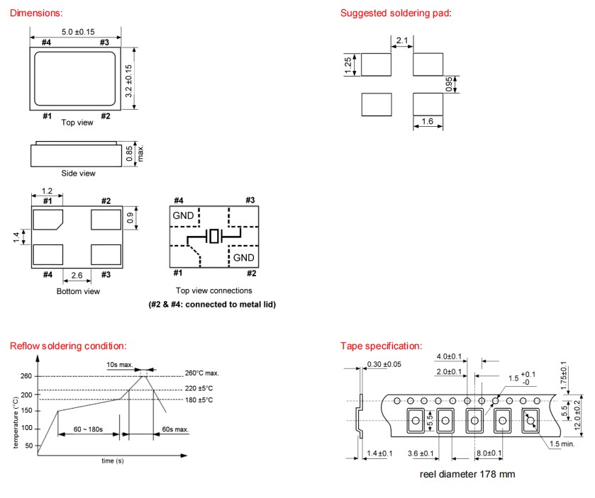 | frequency tolerance at +25°C | standard ±30 ppm; available ±10~±50 ppm | |