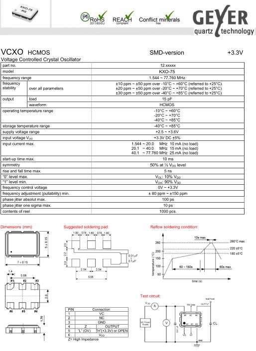 Geyer晶振,KXO-75晶振,壓控晶體振蕩器,壓控晶振(VCXO),壓控石英晶體振蕩器基本解決方案,PECL輸出,輸出頻率60MHz到200MHz之間,出色的低相位噪聲和抖動(dòng),三態(tài)功能,應(yīng)用:SDH/SONET,以太網(wǎng),基站,筆記本晶振應(yīng)用,符合RoHS/無鉛.