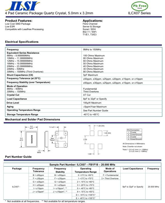 | Frequency Tolerance @ 25ºC ± | ±50ppm, ±30ppm, ±25ppm, ±20ppm, ±15ppm, or ±10ppm |