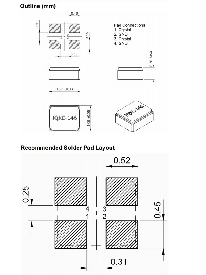 LFXTAL080915,1210mm,IQD無源晶振,32.768KHz晶振,IQXC-146,實(shí)時(shí)時(shí)鐘晶振,尺寸圖