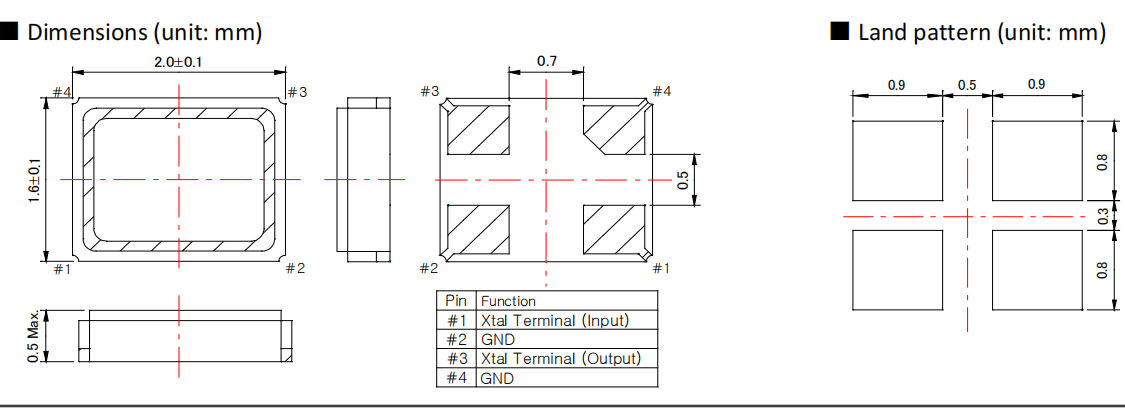 小體積晶振:2.0 x 1.6 x 0.5(最大)mm的表面安裝石英晶體單元。