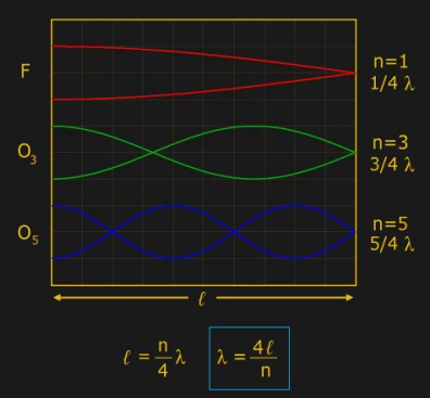 當然,你會指出晶體可以在這個頻率上多次使用,那么它是什么?答案是高于該數字的晶體頻率是通過諧波泛音實現的.低于20MHz的頻率僅僅是基本諧振,其他諧振可以在基頻的倍數處在同一晶體中實現.通過系繩中的駐波,或者如圖所示的封閉管的聲學特性,可以容易地證明這種效果.