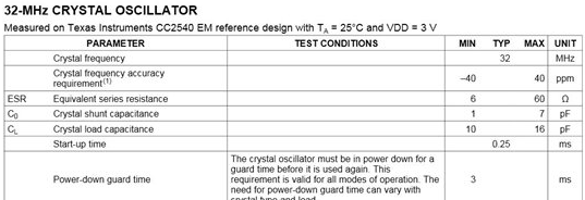 首先,您需要選擇以正確頻率產生共振的晶振.您的無線電可能支持多個參考頻率,或者可能需要特定值.常見的PLL參考時鐘頻率為10-50MHz..(另請注意,生成實時時鐘可能需要32kHz晶振或其中的一些.我們稍后會詳細討論這一點.)讓我們以SimpleLink™CC2540為藍牙低功耗解決方案作為示例.