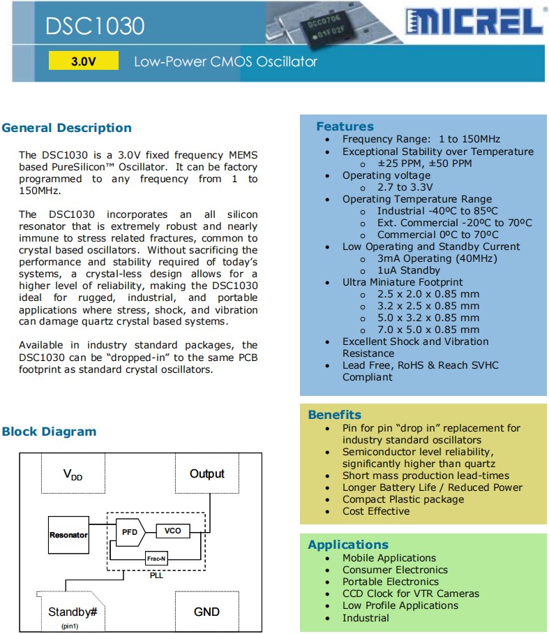 | DSC1030BE2-027.1200T | Microchip晶振 | DSC1030 | 27.12MHz |