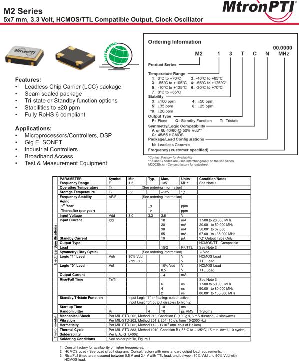 MtronPTI Crystal麥特倫皮晶振公司成立于1965年.是高可靠性,應用設計和制造定制RF微波解決方案公司.MtronPTI晶振公司是LGL合資子公司,專業向市場供應優質的有源晶振,陶瓷諧振器,濾波器等元件,并得到廣大用戶的深度認可.MtronPTI晶振,M2晶振,M213TCN26.0000MHz晶振.