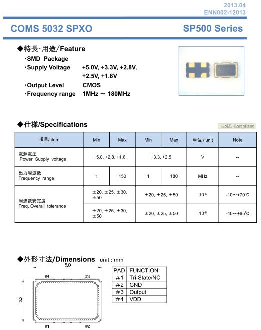 納卡晶振,SP500晶振,SMD有源晶振,5032mm體積的石英晶體振蕩器,有源晶振,該產品可驅動2.5V的溫補晶振,壓控晶振,VC-TCXO晶體振蕩器產品,電源電壓的低電耗型,編帶包裝方式,可對應自動高速貼片機自動焊接,及IR回流焊接(無鉛對應),為無鉛產品,超小型,質地輕.產品被廣泛應用到集成電路,程控交換系統,無線發射基站.