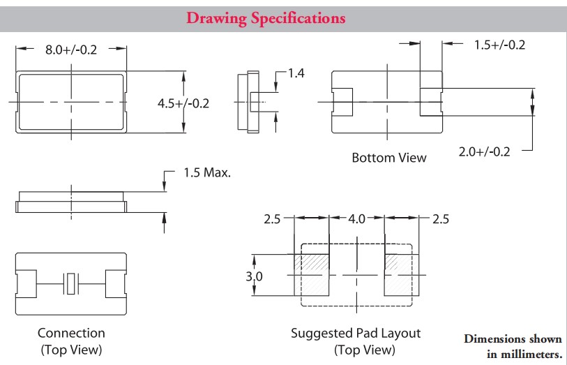 8045mm,NF8-26.000-A-B-A-A-32pF,26MHz,NEL輕薄型晶振,NF8,游戲機晶振,尺寸圖