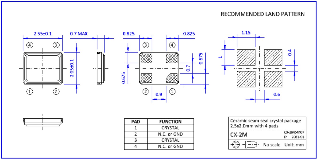 S2M16.0000T18E23-EXT,NKG諧振器,6G無線網絡晶振,S2M20.0000T18F2Y-EXT,石英貼片晶振,尺寸圖