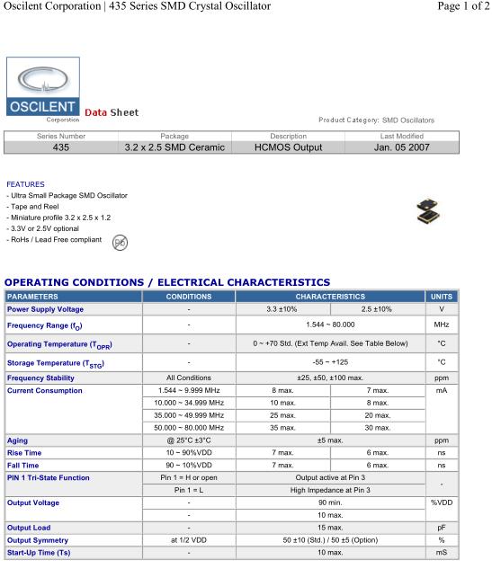 Oscilent晶振,435-12.0M-3EN-TTS晶振,SMD振蕩器,小型SMD有源晶振,從最初超大體積到現在的7050mm,6035mm,5032mm,3225mm,2520mm體積,有著翻天覆地的改變,體積的變小也使產品帶來了更高的穩定性能,接縫密封石英晶體振蕩器,精度高,覆蓋頻率范圍寬的特點,SMD高速自動安裝和高溫回流焊設計,Optionable待機輸出三態輸出功能,電源電壓范圍:1.8V~5V,高穩定性,低抖動,低功耗,主要應用領域:無線通訊,高端智能手機,平板筆記本WLAN,藍牙,數碼相機,DSL和其他IT產品的晶振應用,三態功能,PC和LCDM等高端數碼領域,符合RoHS/無鉛.