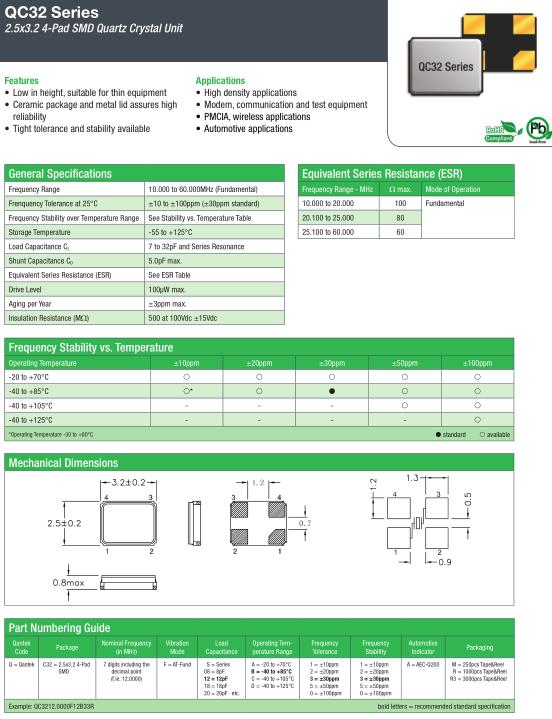 | General Specifications-QANTEK晶振 | QC32晶振 |