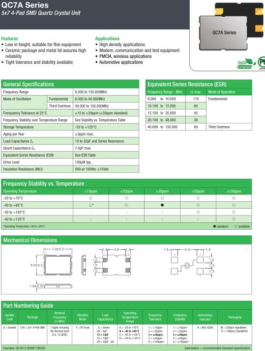 | General Specifications-QANTEK晶振 | QC7A晶振 | |
