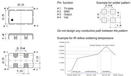 在一個不同擴張系數電路板(環氧玻璃)上焊接陶瓷封裝石英晶振時,在溫度長時間重復變化時可能導致端子焊接部分發生斷裂,請事先檢查焊接特性。QuartzCom晶振,MCO-2S25晶振,6035mm晶振.