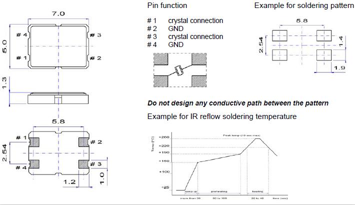 在一個不同擴張系數電路板(環氧玻璃)上焊接陶瓷封裝石英晶振時,在溫度長時間重復變化時可能導致端子焊接部分發生斷裂,請事先檢查焊接特性。QuartzCom晶振,SMX-1S晶振,無源四腳晶振.