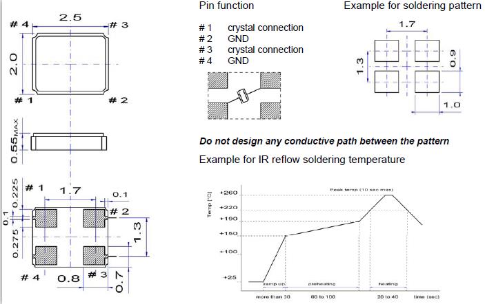 (1) 在更高或更低溫度或高濕度環境下長時間保存晶振時,會影響頻率穩定性或焊接性。請在正常溫度和濕度環境下保存這些石英晶振產品,并在開封后盡可能進行安裝,以免長期儲藏。