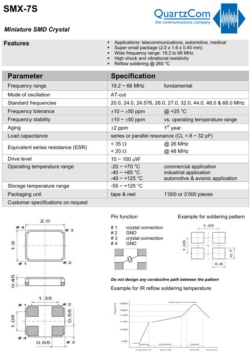 | Standard frequencies | 20.0, 24.0, 24.576, 26.0, 27.0, 32.0, 44.0, 48.0 & 66.0 MHz |