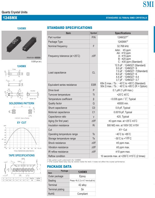 SMI晶振,124SMX晶振,低抖動晶振,32.768K時鐘晶體具有小型,薄型,輕型的貼片晶振表面音叉型晶體振蕩器,產品具有優良的耐熱性,耐環境特性,可發揮晶振優良的電氣特性,符合RoHS規定,滿足無鉛焊接的高溫回流溫度曲線要求,金屬外殼的封裝使得產品在封裝時能發揮比陶瓷振蕩器外殼更好的耐沖擊性.