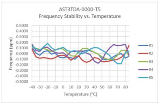 圖2:ast 3 TDA-0000-T5的頻率穩定性與溫度的關系