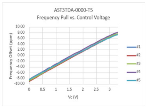至關重要的是,頻率牽引是單調的,以確保小范圍內的可靠頻率鎖定 細胞平臺和AST3TDA-0000-T5正是這樣做的。頻率牽引范圍通常 在7ppm時執行,最小值為5ppm。