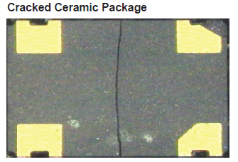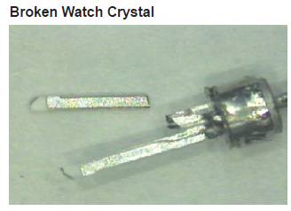 過(guò)度的震動(dòng)會(huì)導(dǎo)致電特性的改變,這很可能會(huì)表現(xiàn)為頻率的改變.嚴(yán)重的虐待,例如掉落到堅(jiān)硬的表面上,很可能導(dǎo)致石英坯料的實(shí)際破裂.在陶瓷封裝部件的情況下,陶瓷也可能破裂,導(dǎo)致氣密性損失. 處理引線
