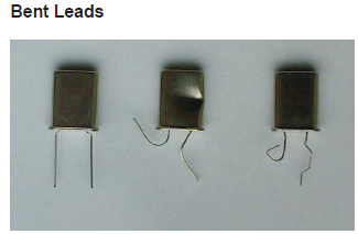 引線過(guò)度彎曲會(huì)損壞玻璃與金屬之間的密封,從而導(dǎo)致外殼失去氣密性.外殼充滿干燥的惰性氣體,失去氣密性將導(dǎo)致產(chǎn)品因大氣污染而迅速變質(zhì).因此,搬運(yùn)壓電石英晶體時(shí)應(yīng)小心,不要拉或彎曲引線.如果組件需要以彎曲的方式移動(dòng),引線應(yīng)該稍微彎曲遠(yuǎn)離玻璃密封件,以避免破裂.推薦的最小曲率半徑取決于產(chǎn)品,例如HC49晶體為2mm,UM1s晶體為1mm. 帶卷產(chǎn)品