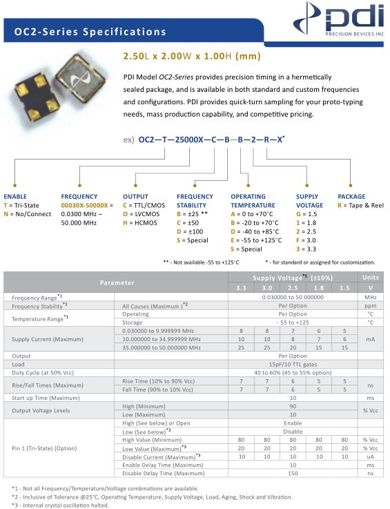 Wi2Wi晶振,OC2晶振,OC2-T-25000X-C-B-B-2-R-X晶振,有源晶振,是指晶體本身起振需要外部電壓供應,起振后可直接驅動CMOS集成電路,產品本身已實現與薄型IC(TSSOP封裝,TVSOP封裝)同樣的1mm厚度,斷開時的消費電流是15µA以下,編帶包裝方式可對應自動搭載及IR回流焊接(無鉛對應)產品有幾種電壓供選1.8V,2.5V,3V3.3V,5V,以應對不同IC產品需要.