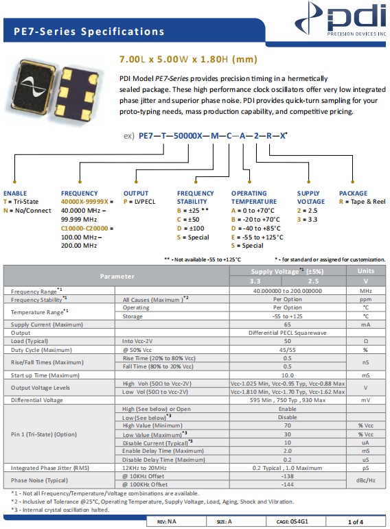 Wi2wi低抖動晶振,PE7-T-65000X-M-C-E-2-R-X,石英晶體振蕩器,參數表