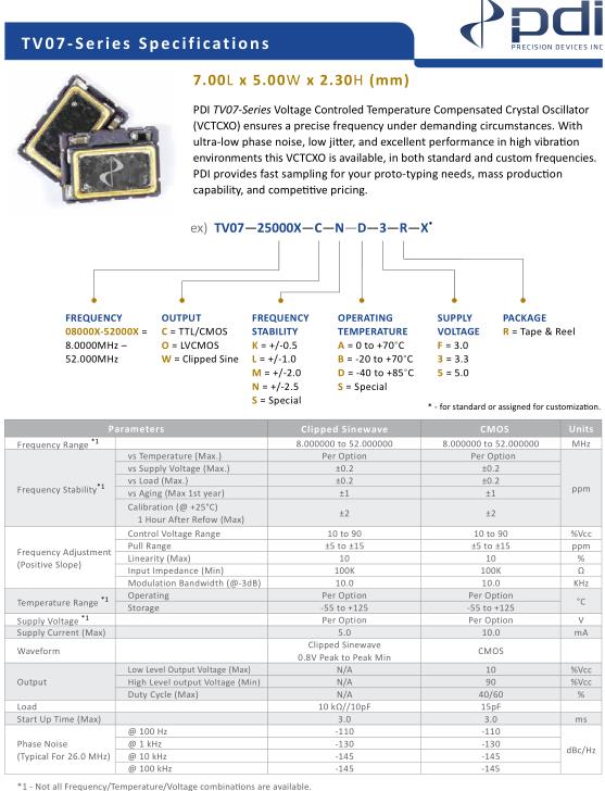 Wi2Wi晶振,TV07晶振,TV07-26000X-C-N-D-3-R-X晶振,小型SMD有源晶振,從最初超大體積到現在的7050mm,6035mm,5032mm,3225mm,2520mm體積,有著翻天覆地的改變,體積的變小也使產品帶來了更高的穩定性能,接縫密封石英晶體振蕩器,精度高,覆蓋頻率范圍寬的特點,SMD高速自動安裝和高溫回流焊設計,Optionable待機輸出三態輸出功能,電源電壓范圍:1.8V~5V,高穩定性,低抖動,低功耗,主要應用領域:無線通訊,高端智能手機,平板筆記本WLAN,藍牙,數碼相機,DSL和其他IT產品的晶振應用,三態功能,PC和LCDM等高端數碼領域,符合RoHS/無鉛.