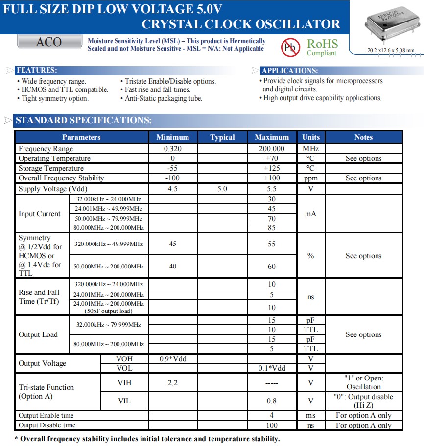 | ACO-20.000MHZ-EK | Abracon晶振 | ACO | XO (Standard) | 20MHz | 5V | -20°C ~ 70°C |