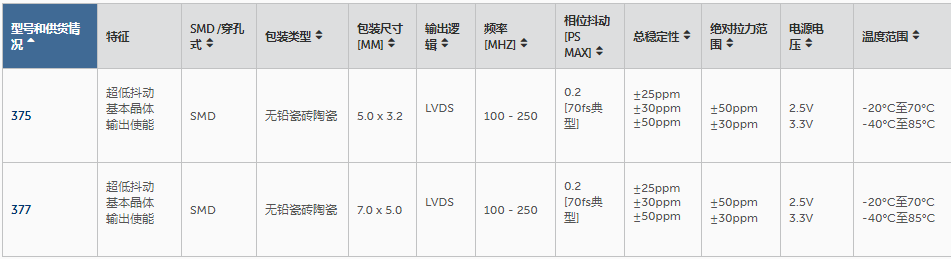 更多>>美國(guó)西迪斯LVDS輸出代碼系列之375LB6C2000T晶振