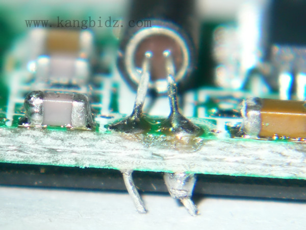 康比電子提醒:焊點(diǎn)也不是錫多、錫大為好,相反,這種焊點(diǎn)虛焊的可能性更大,有可能是焊錫堆積在上面,而不是焊在上面。若一次上錫量不夠,可再次補(bǔ)焊,但一定要等前次上的錫一同被熔化后再移開(kāi)電烙鐵;若一次上錫量太多,可用烙鐵頭帶走適量。