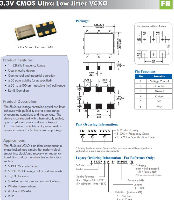 FR系列VCXO是一種理想的