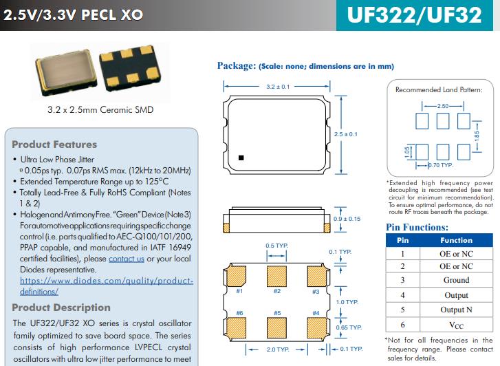 UF322/UF32 XO系列是時鐘振蕩器家庭優化節省板空間。該系列由高性能LVPECL晶體組成滿足振蕩器的超低抖動性能嚴格的芯片組要求。它支持各種可選頻率范圍更寬,2.5V/3.3V電壓,以及各種穩定性。它被設計用來滿足用于通信的時鐘源規格系統等高性能設備。