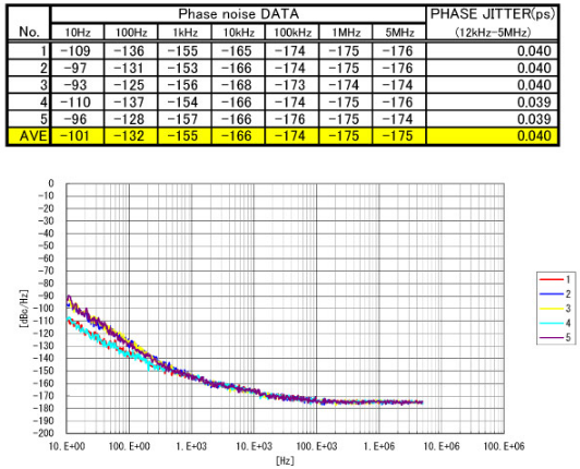 GXO-3306的相位噪聲曲線顯示出優異的相位噪聲基底-175dBc/Hz@1MHz,抖動性能典型值為0.04ps(12kHz~5.0MHz)