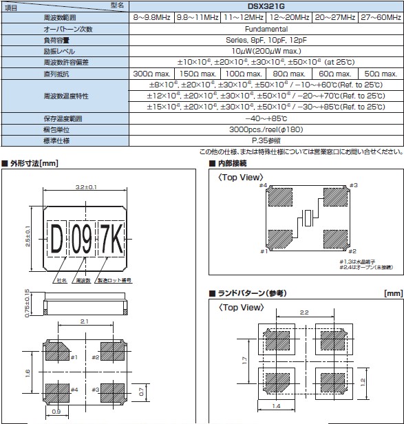 DSX321SL, 13 —60MHz, 3.2×2.5×0.5 mm,盤裝無(wú)源晶振金屬面