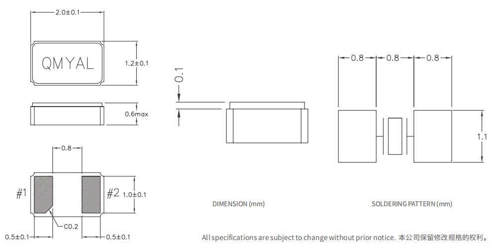 SMLF-2012,Interquip無源晶振,鐘表電子晶振,6G無線晶振,32.768K貼片晶振,可穿戴設備晶振,尺寸圖
